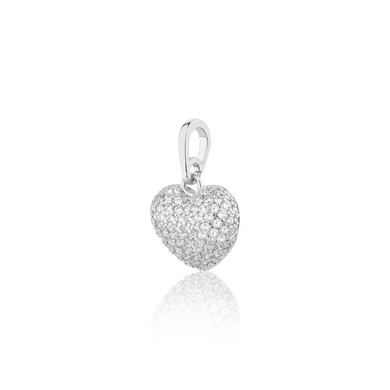 Pingente coração banhado à ródio cravejado com zircônias Detalhes do Produto: - Largura 1,34 cm - Altura 1,95 cm